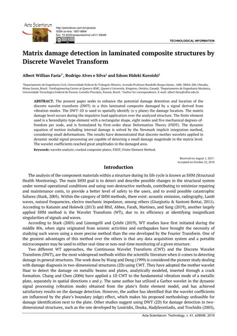 Matrix Damage Detection In Laminated Composite Structures By Discrete Wavelet Transform