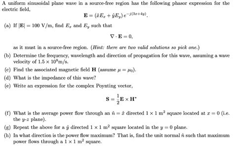 Solved A Uniform Sinusoidal Plane Wave In A Source Free R Chegg Com